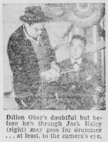 The 1930 census shows Dillon and Nellie Ober living in Queens, but by 1934 he begins to appear in credits for movies made in California, starting with the comedy short “Old Maid’s Mistake,” followed by “Every Night At Eight” in 1935 and “The Country Doctor” and “The Crimes Of Dr. Forbes” in 1936. Ober wasn’t a complete stranger to acting, having already appeared in the 1928 Broadway musical Here’s Howe (with music by bandleader Roger Wolfe Kahn and introducing the standard “Crazy Rhythm”). He didn’t seem to need much theatrical range for film, given roles such as “comedy singer, piano player” and “trick drummer.” More importantly, Ober had an entryway into the West Coast studios. By 1937, the Pittsburgh Post Gazette reported Ober was “…on Walt Disney’s payroll out in Hollywood, tapping out sounds in animated talkies.” Ober’s un-credited work from this period might not have been glamorous but it was steady and he seemed to enjoy it.