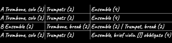 The second chorus keeps changing the lead in continuous two and four-bar increments; reversing the order for the bridge is another nice touch: