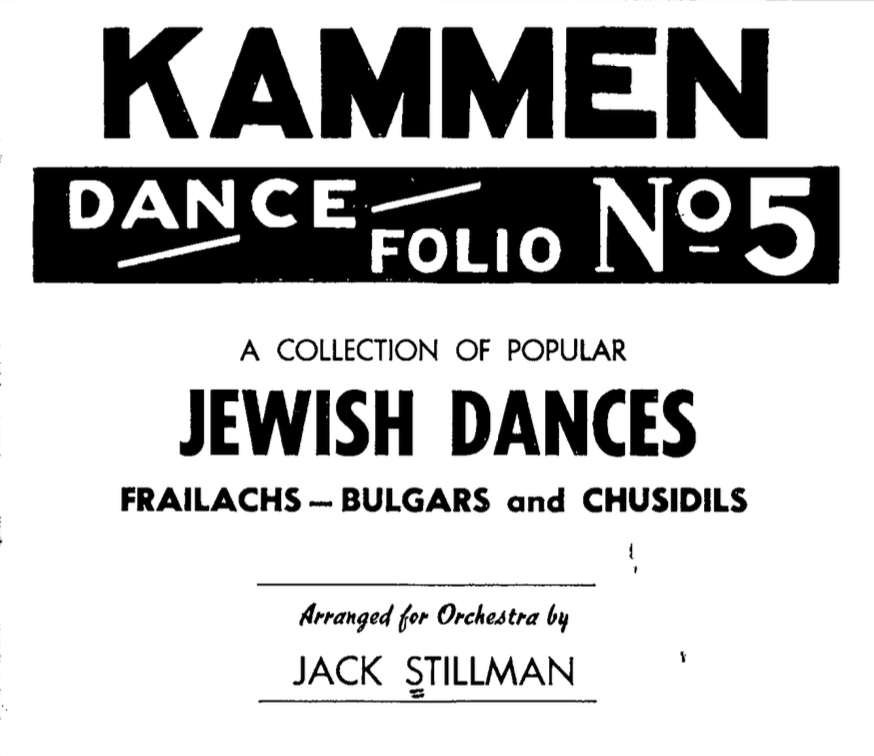 Versatility was crucial in Stillman’s business. In addition to leading and arranging for dance bands, he worked in multiple genres. His granddaughter recalled Stillman arranged for Sophie Tucker, though the tunes and circumstances are unclear. He also published arrangements of folk and Yiddish stage music (which he may have had some personal connection to) for the general public. In 1928, the Kammen brothers sheet music firm published Stillman’s folio of Jewish dance arrangements. He also arranged a collection of themes by comic actor Ludwig Satz. There are likely other examples of Stillman’s work in this area awaiting discovery.