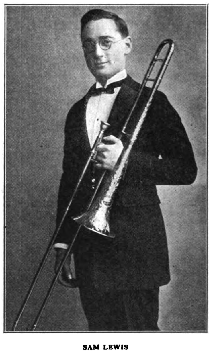 Trombonists Ephriam Hannaford and Sammy Lewis had the disadvantage of being born outside New Orleans and playing at the same time as Miff Mole. They’re virtually forgotten outside of twenties music aficionados. So much for the verdict of posterity! Lewis’s blustery paraphrases and well-timed fills between the top voices show a gifted ensemble player, like on “By the Light of the Stars” or “Show Me the Way to Go Home.” Ten years Lewis’s senior, Hannaford plays with a more ragtime-influenced rhythmic sense, for example, in his lines under the ensemble on “Alabamy Bound.” His darker sound also gives an august feel to straight melody statements like those on Gennett’s instrumental version of “I’m in Love with You.”
