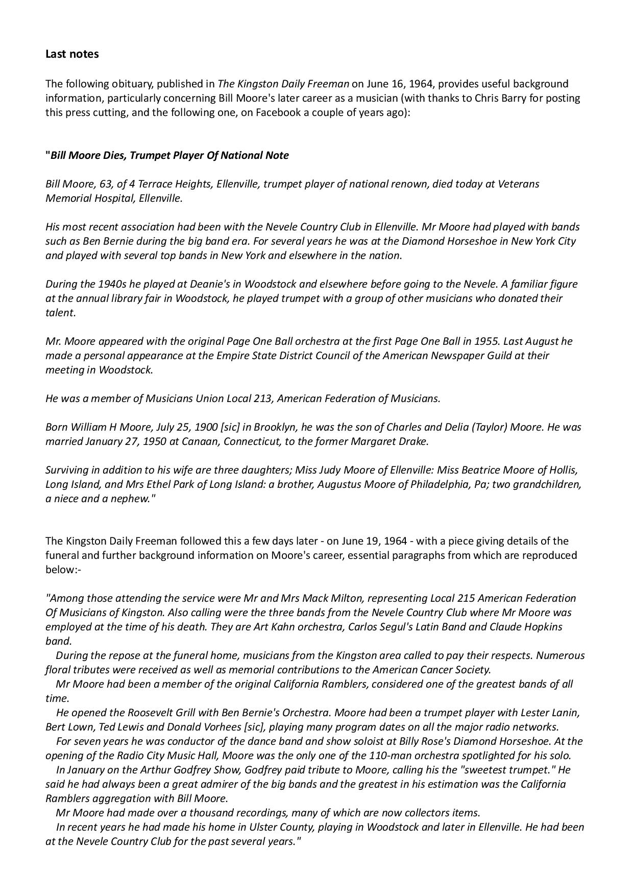 Nick Dellow is a diligent researcher (and an audio engineering wizard), so I’m excited to share his latest project: an investigation into trumpeter Bill Moore. This article originally appeared on Mr. Dellow’s Facebook page. I asked him to share it via my blog for those who don’t use Facebook.